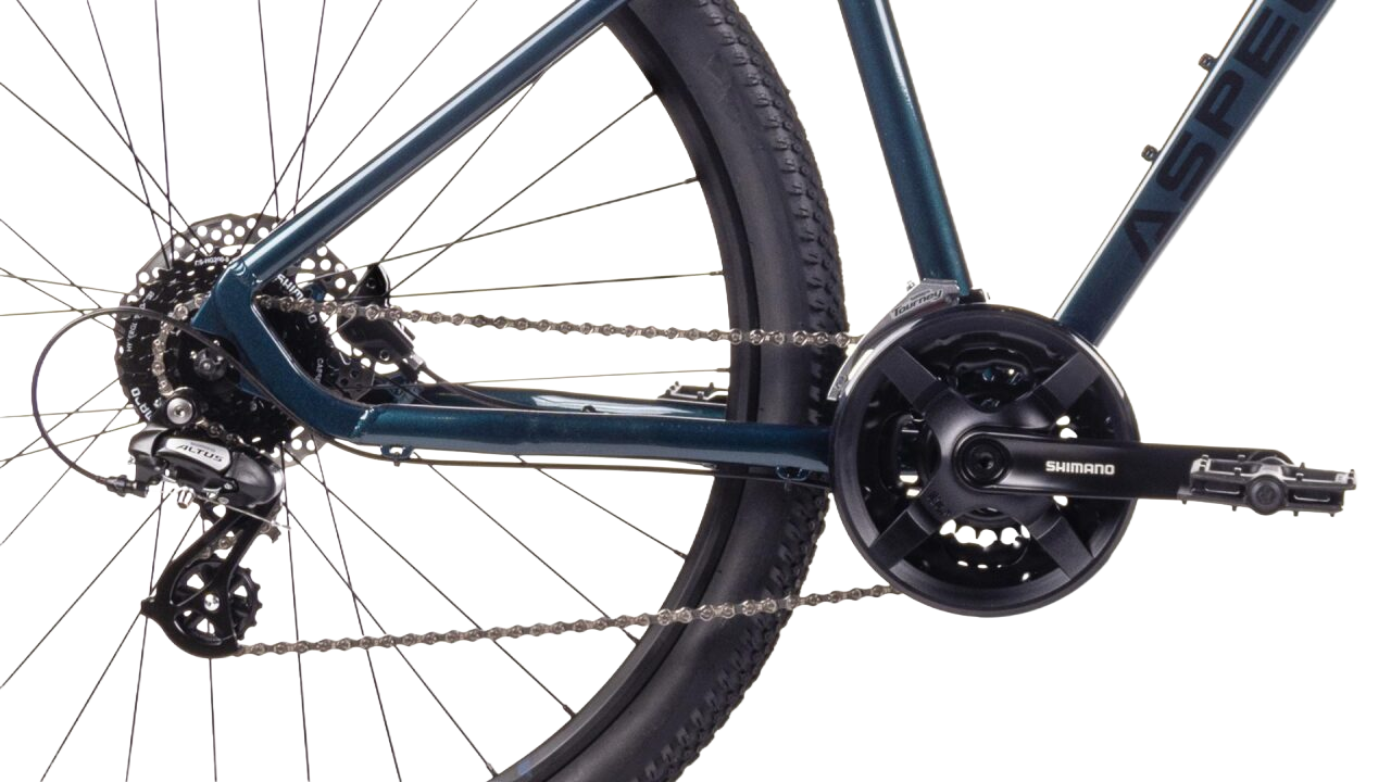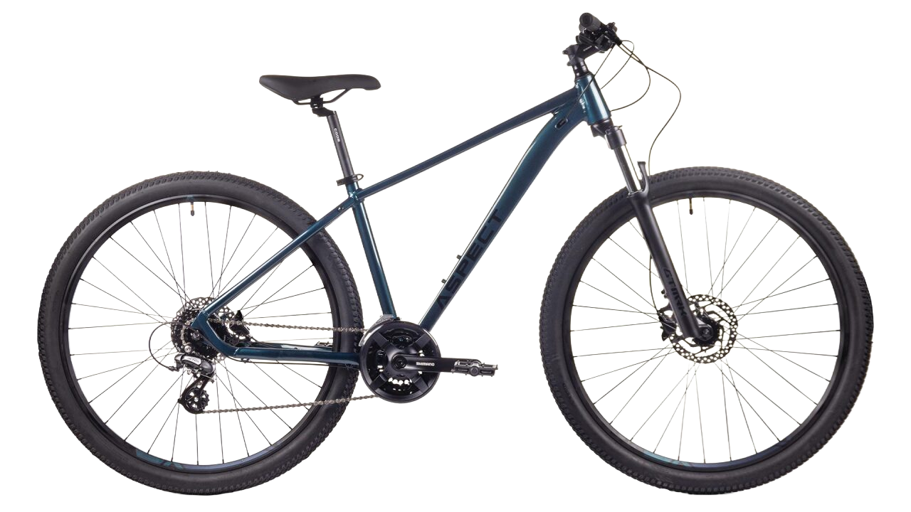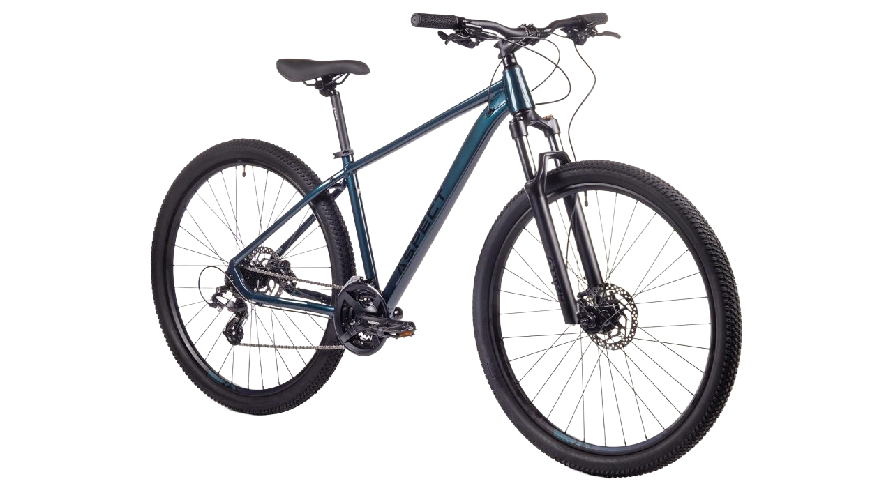 Горный велосипед Aspect Nickel с колесами 29 дюймов. Скоростная трансмиссия и переключатель скоростей Shimano Altus RD-M310. Покрышки 29x2.2 Модель оснащена удобной вилкой с ходом 100mm. Рама из алюминиевого сплава. На велосипеде установлены надёжные дисковые гидравлические тормоза Shimano.